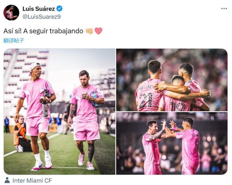 苏亚雷斯社媒晒图庆祝获胜:就是这样!继续努力👊🏼 xiaoqiao 2025-09-15 意甲 69 0 8月17日讯 美职联常规赛,迈阿密国际3-1战胜洛杉矶银河。赛后,苏亚雷斯在社交媒体晒图,庆祝球队获胜。苏亚雷斯上传了与梅西等队友的合影,并配文写道:“就是这样!继续努力。”